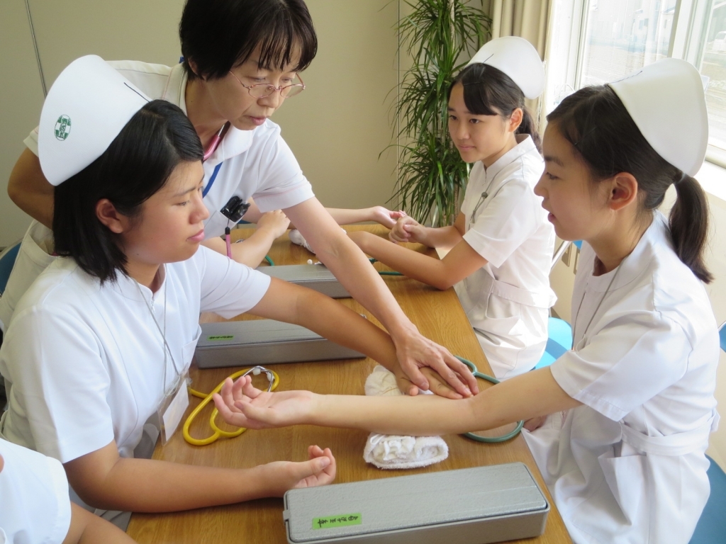 高校生に患者さんとの接し方についてアドバイスをしていました。
