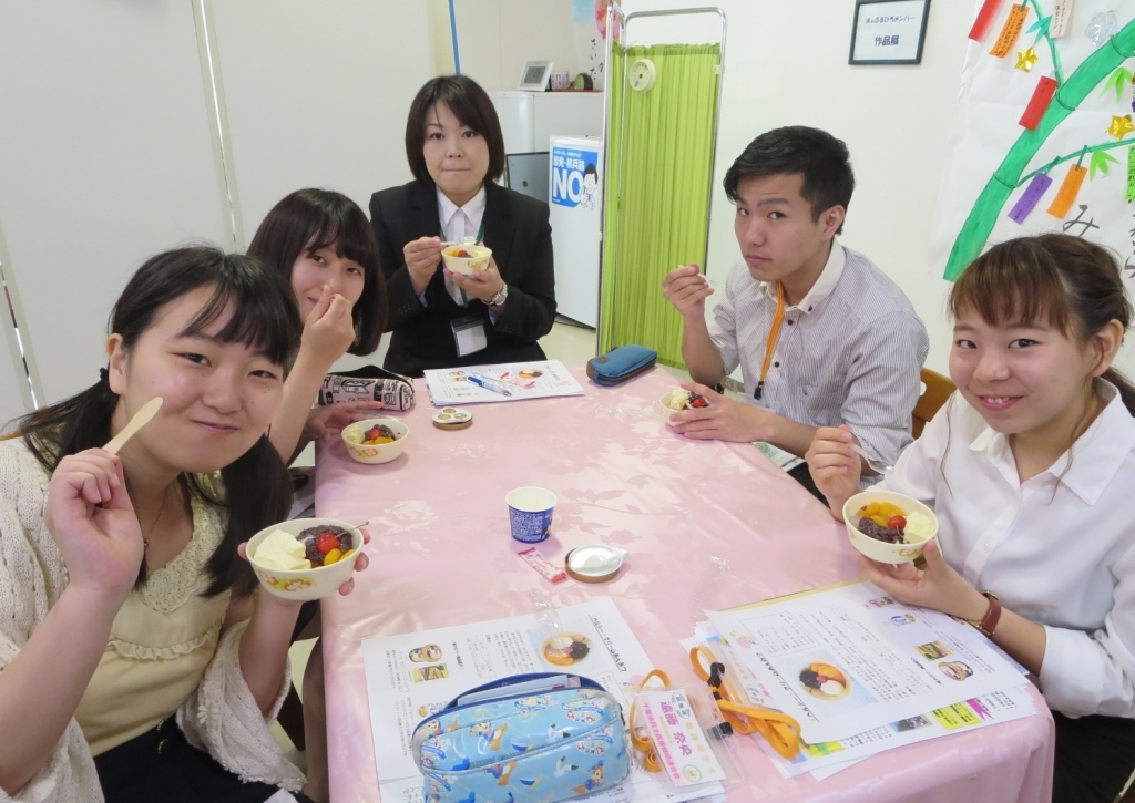 今回は、千葉健生病院の管理栄養士に来ていただき、栄養指導や患者さんの食習慣についての事例を元に学生同士で食生活について考えました。