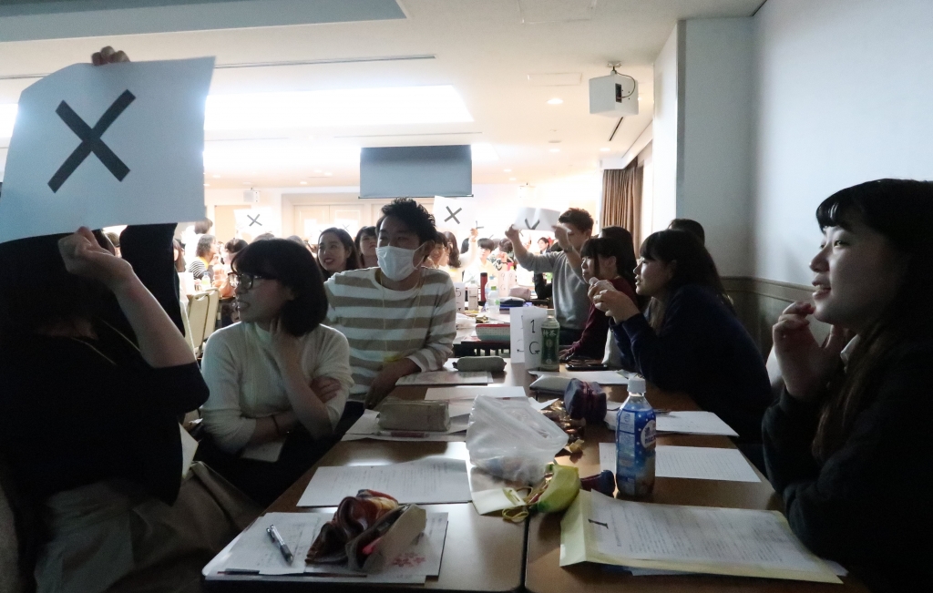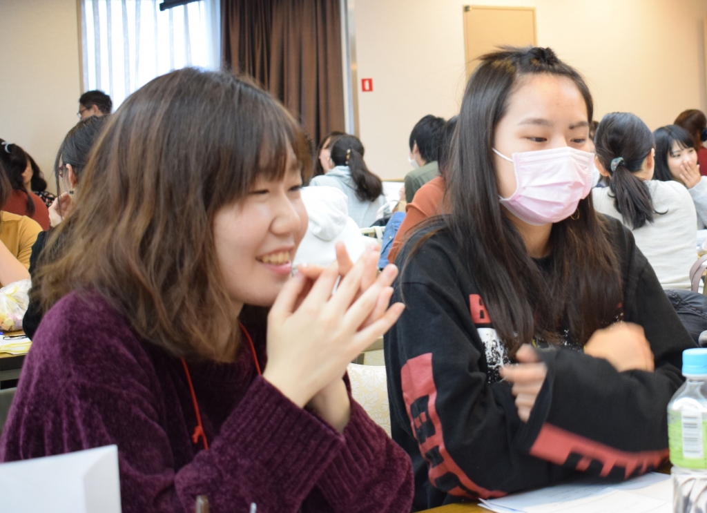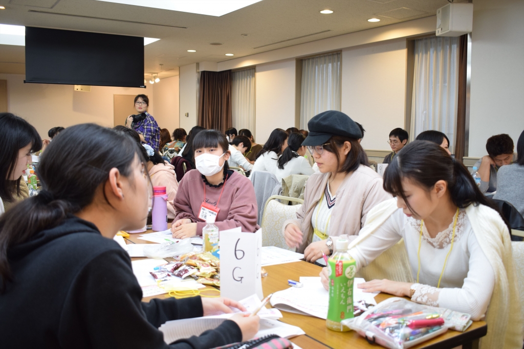 参加学生はグループごとのテーブルで初対面の学生同士。各グループでは実行委員の学生または担当職員がリーダーとなり、メンバーが打ち解けるように進めていきます。