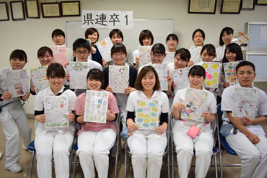2月13日1年目研修のふりかえりを行いました。この1年間で、「感染予防・オムツ交換」「食事援助・離床動作」「採血・輸液の管理」「排泄援助技術」「多重課題」「接遇」「入院体験」などなど、たくさんの研修を行ってきました。日常の業務と研修のなかで、ともに支えながらのりこえてきています。
