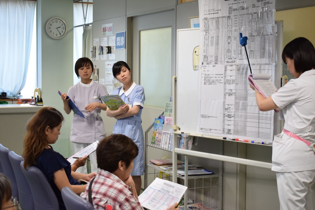 内容は健診に来院する方の問診見学と、健診受診者の結果説明会で学生自身による検査の説明です。