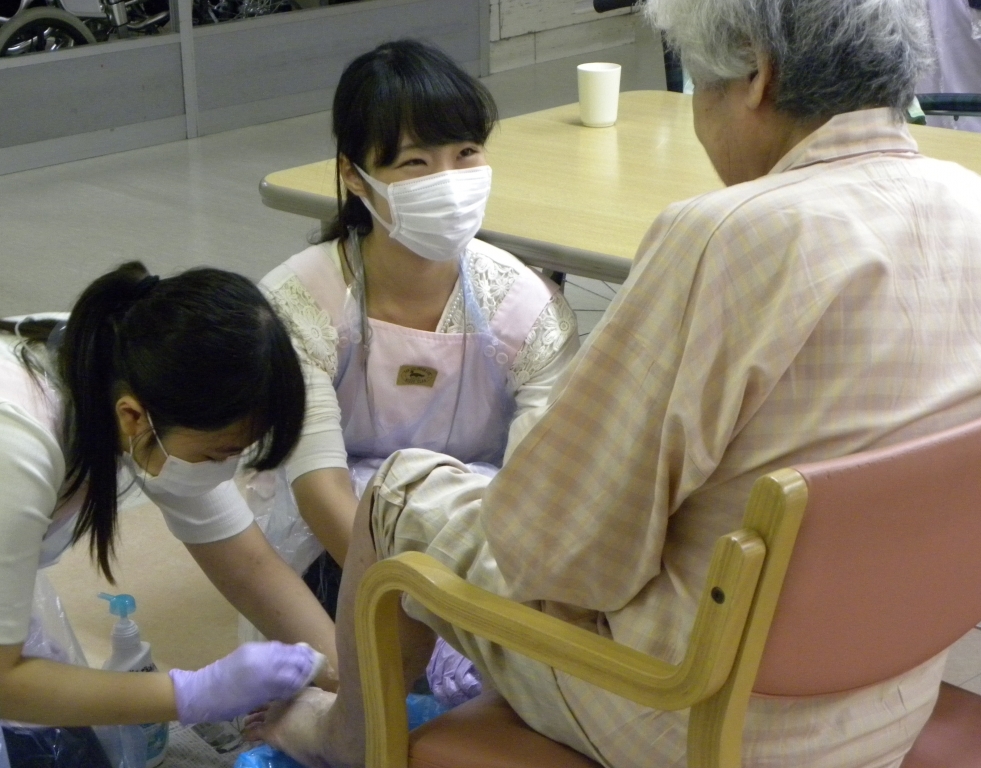 9月24日、船橋二和病院で入院患者さんの足浴を行いました。