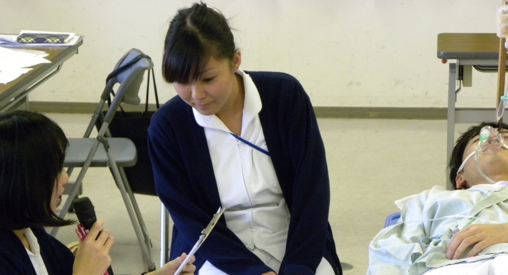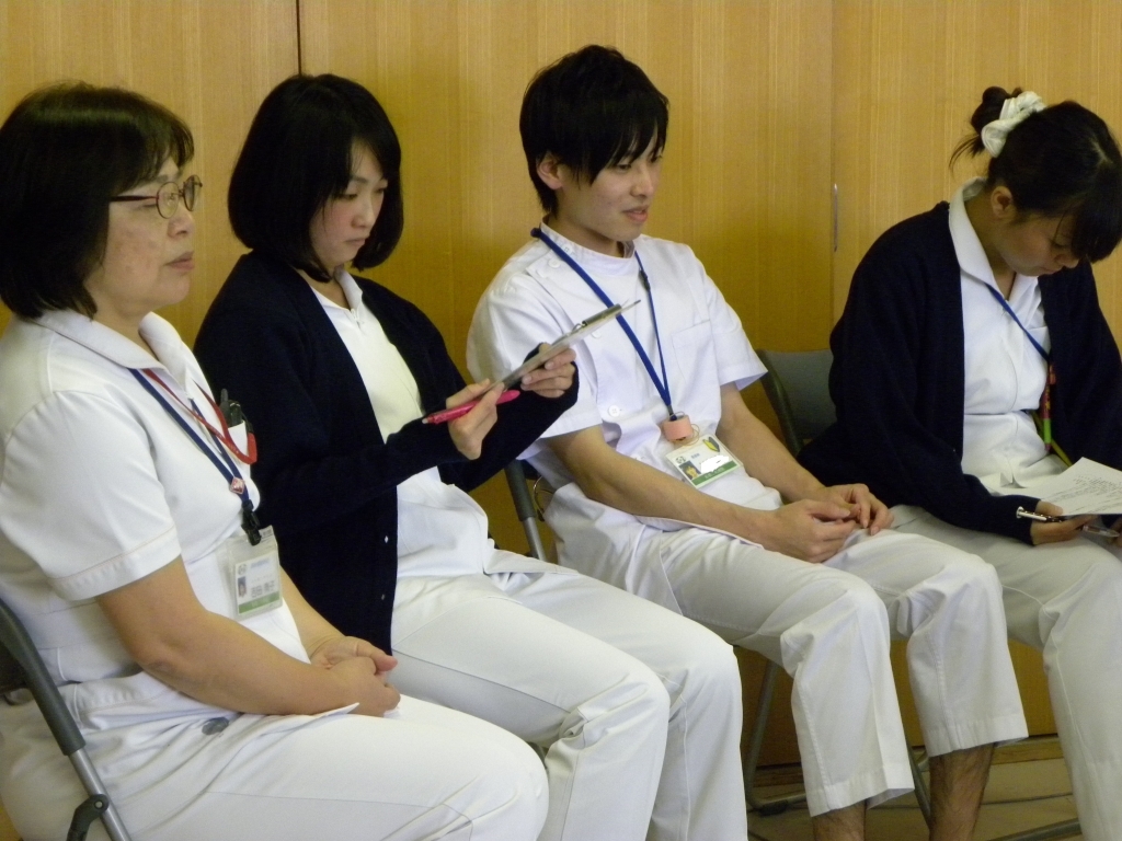 看護計画が出来上がったら、さっそく患者役・患者家族役・看護師役に分かれてロールプレイ。