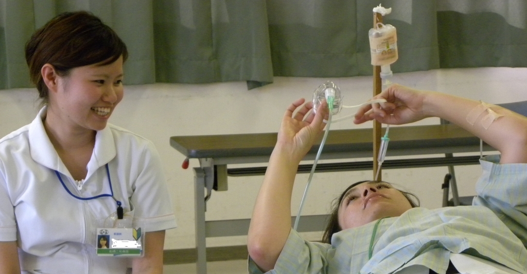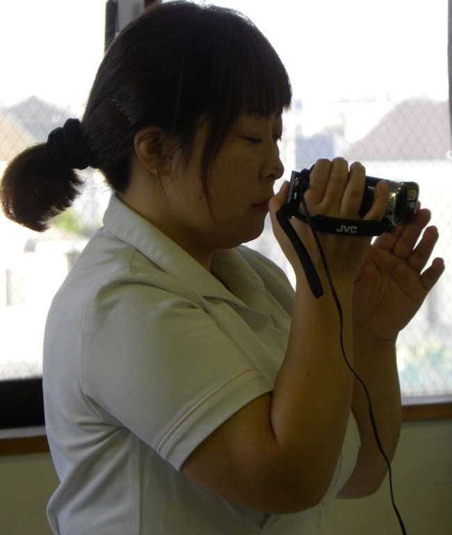 先輩看護師も後で振り返るためにビデオカメラをまわして見守っています。