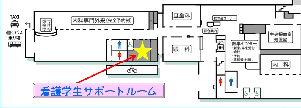 看護学生サポートルームには、看護学生担当師長と担当事務が常駐しています。